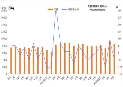 據(jù)國家統(tǒng)計(jì)局?jǐn)?shù)據(jù),2022年1-4月份全國鐵礦石原礦總產(chǎn)量為33079.4萬噸,同比下降0.9%,4月份受到疫情影響,導(dǎo)致國產(chǎn)原礦鐵礦石產(chǎn)量出現(xiàn)大幅下滑。