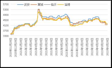 據云商平臺監測數據顯示,截至6月30日,鑄造生鐵天津地區報價4250元,較月初跌150元;武安地區報價4150元,較月初跌220元;翼城地區報價4150元,較月初跌150元;上海地區報價4500元,較月初跌150元;臨沂地區報價4200元,較月初跌200元(詳見圖3)。