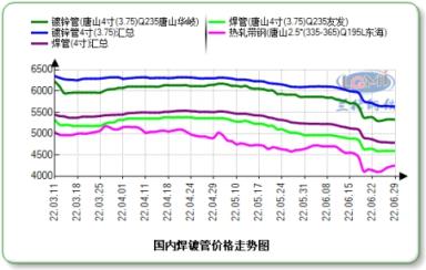 6月面臨美聯儲加息、國內宏觀經濟數據偏空雙重壓力,鋼市行情崩塌式探底,焊鍍管價格最高三天降幅達500元,需求傾向偏弱方向,但上游供應壓力不減,市場信心修復需要時間,行情持續壓制在低位運行。
