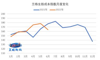 圖1 生鐵成本指數(shù)走勢(shì)圖