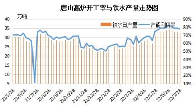 據(jù)網(wǎng)調(diào)研數(shù)據(jù)顯示:截至7月28日,唐山區(qū)域高爐產(chǎn)能利用率70.21%,環(huán)比上月下跌8.68個百分點;鐵水日均產(chǎn)量較上月減少約1.7萬噸。