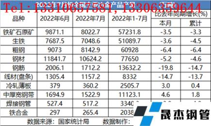 從各品種細分產量來看,建筑厚壁鋼管品種成為了主力減產品種,而板材類品種產量保持了相對穩定的生產節奏(詳見表1),同時從統計數據來看,1-7月,黑色金屬冶煉和壓延加工業實現利潤總額569.0億元,同比下降80.8%;其中重點大中型厚壁無縫鋼管企業實現利潤總額936億元,同比下降63.4%。由于重點大中型厚壁無縫鋼管企業的產能主要集中在板材及特鋼類品種,其盈利能力明顯要高于建材類品種。